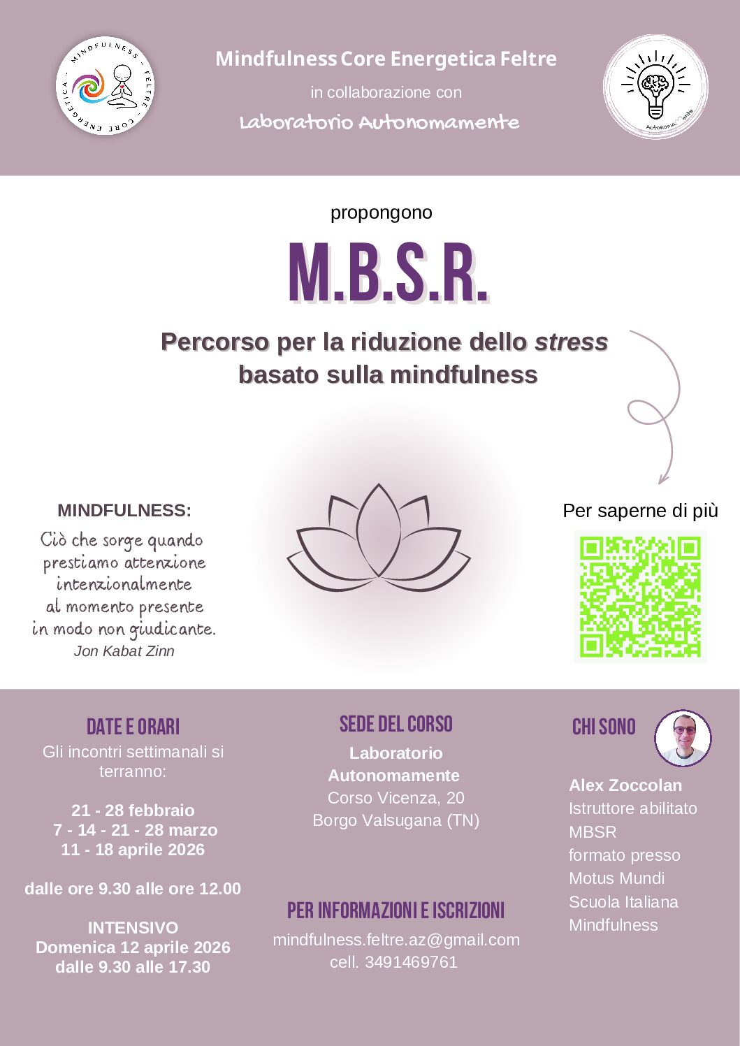 Offriamo percorsi brevi di meditazione guidata, adatti anche a chi si avvicina per la prima volta a queste pratiche, e percorsi strutturati come l’MBSR – Mindfulness-Based Stress Reduction, un programma basato sulla mindfulness che ha dimostrato efficacia scientifica nella riduzione dello stress e nel miglioramento della qualità della vita.